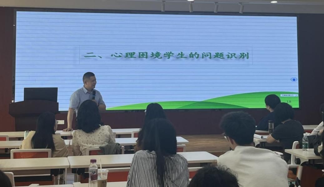 负责学院心理健康联系工作的老师、各学院负责心理健康工作的辅导员参与培训会,雷鸣副主任主持。