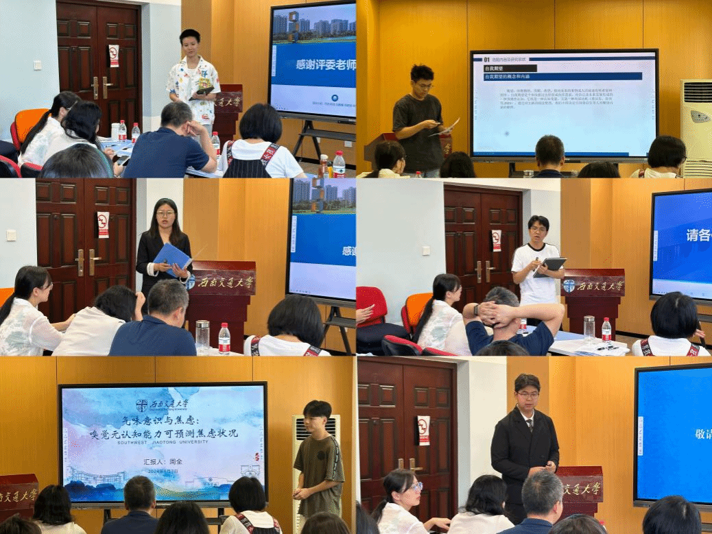 为全面推进“本科生学术与科研创新计划”项目,进一步提升学生的科研和创新能力,澳门六合彩开奖直播 于2024年6月7日14:00在犀浦校区X5229开展“本科生学术于科研创新计划”中期答辩。本次答辩由心理澳门六合彩开奖直播 辅导员樊菊主持,心理澳门六合彩开奖直播 副教授李启明、副教授冯果、讲师冉俐雯担任评委,10组答辩成员到场参与答辩。