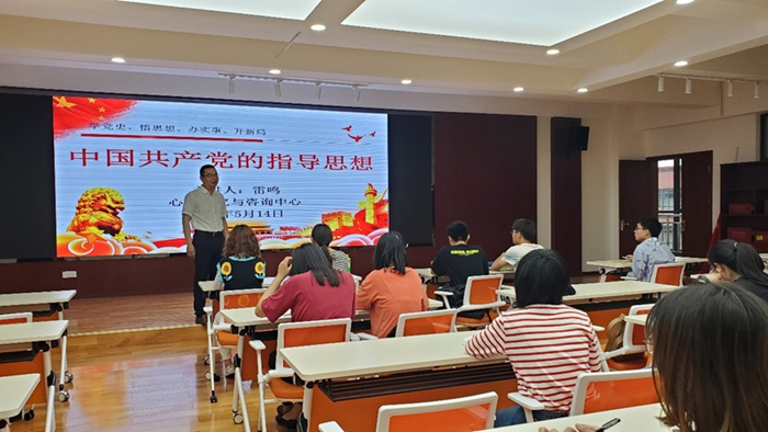2021年5月14日19:00,雷鸣副主任为积极分子主讲了题为《中国共产党的指导思想》的专题党课。他表示,中国共产党之所以能够在百年辉煌历程中创造发展奇迹,带领中国人民从站起来、富起来逐渐走向富起来,最根本的原因就是我们党的事业有马克思列宁主义科学真理及其中国化理论成果的指导。接着,雷鸣副主任向积极分子同学们详细介绍了党的指导思想的核心内容。最后他指出,伟大理论指导伟大实践,伟大实践孕育伟大理论,实践不断发展,理论也要跟上步伐,我们党善于在实践基础上不断推进理论创新,促进党的事业不断向前发展。