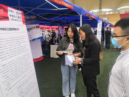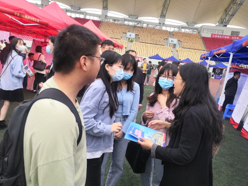 2021年4月24日,西南交通大学2021届毕业生暨2022届实习生春季双选会于犀浦校区北区体育场举行。澳门六合彩开奖直播 直属党支部书记刘咏梅、以及辅导员陈瑶、梁坡深入双选会现场了解用人单位情况,并指导学生就业工作。