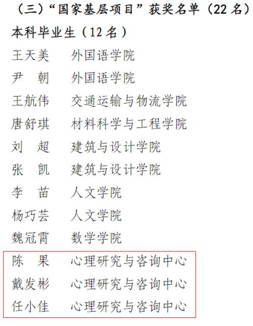 4名本科生荣获西南交通大学毕业生就业奖,他们分别是心理澳门六合彩开奖直播