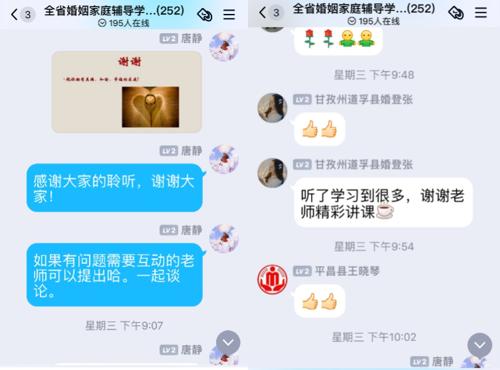 承办的婚姻家庭辅导项目线上微课在全省婚姻家庭辅导交流群中展开。此次微课的主题是“家庭文化建设”,主讲老师为科普基地的唐静老师,在线学习有195人。