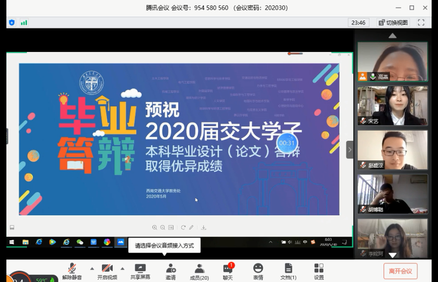 应用心理学专业2020届本科生毕业设计(论文)校抽样答辩在腾讯会议平台如期举行。答辩委员会主任陈华教授担任组长并全程参与,雷鸣、汪小容、张学伟、董洁、杨兴鹏、曾毅、冉俐雯(秘书)作为评委参与答辩,顾卓然、任小佳、徐贵娟、冉虹、薛林凯5位同学参加校级抽样答辩,院级各答辩小组长、教师代表、应用心理学2020届全体本科生、双学位学生通过线上会议旁听答辩。