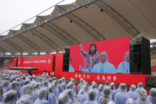912日上午8:302020级新生开学典礼在北区体育场举行,陈华主任出席开学典礼,柯小君副书记、梁坡老师、靳涵老师及学生代表带领新生入场就坐。杨丹校长在典礼中致辞对新同学表示热烈欢迎。伴着蒙蒙细雨,2020级新生开学典礼圆满结束。