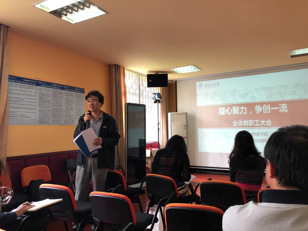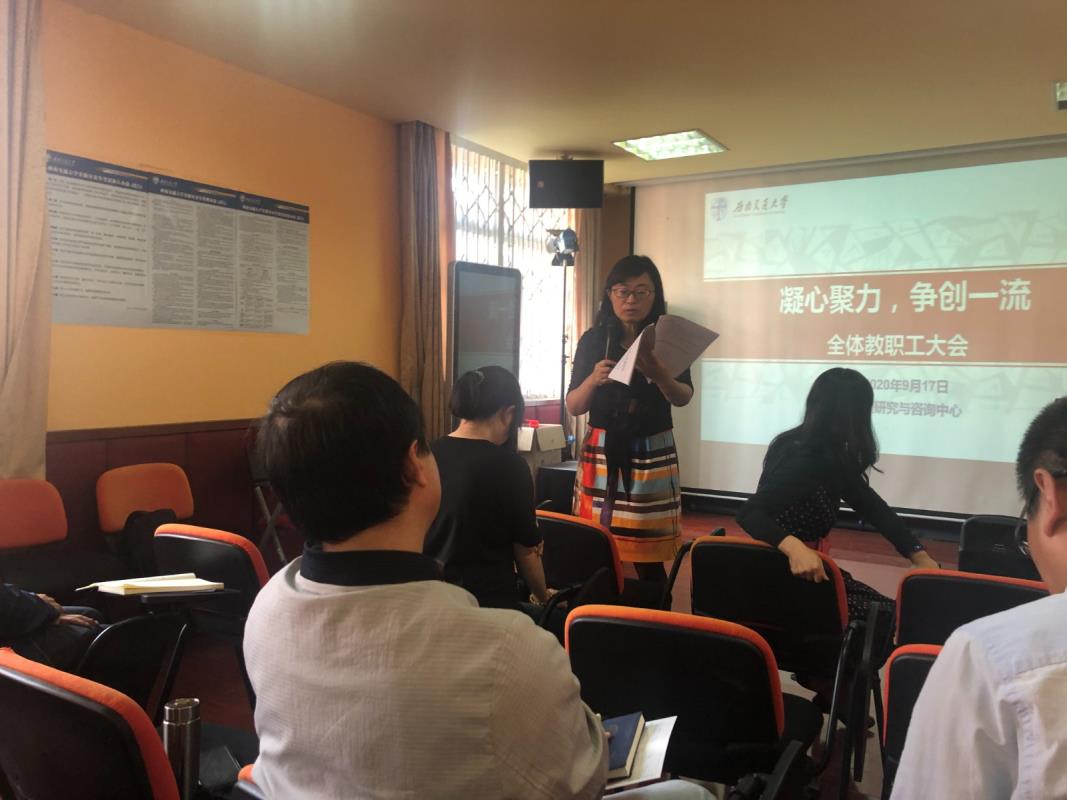 2020-2021学年第一次全体教职工大会在犀浦校区5322召开,全体教职工参会。会议由陈华主任主持,诚邀教务处副处长康锐、教务处质量评估办公室主任冷伟来澳门六合彩开奖直播