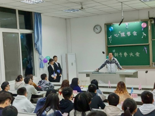 副主任兼峨眉咨询部主任王琛老师、峨眉咨询部副主任李玉梅老师和峨眉咨询部专职心理教师赵轶群老师外,还有心理学会全体新老成员。与此同时,也邀请到了峨眉校区其他各社团的干部代表参与此次心理学会的迎新大会。