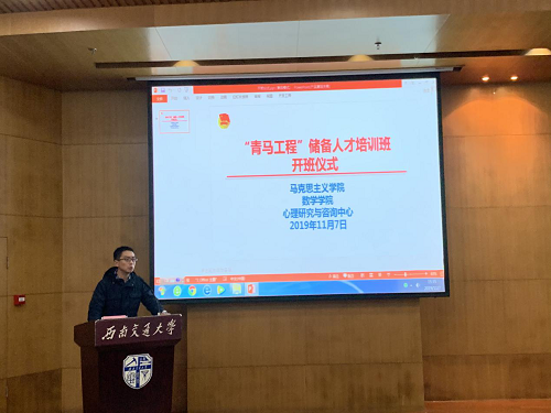 、马克思主义学院、数学学院三院“青马工程”储备人才培训班开班仪式于犀浦校区图书馆一号报告厅举行。本次培训由马克思主义学院的何薇教授、西南交通大学博士宣讲团成员李师二人做专题报告。参与本次开班仪式的有数学学院团委书记邓思然、心理咨询和研究澳门六合彩开奖直播