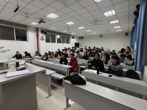 讲座开始之前,李老师先让大家进行了一场小游戏:参加讲座的同学们先围成了两个圈,然后相互抛出事先准备好的游戏道具,不限对象。原本素不相识的同学们在这场游戏中尽情互动,似乎也产生了某些联系和情感,同时也引出主题系统动力。