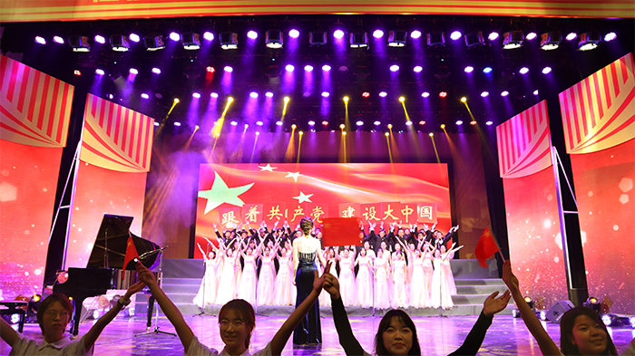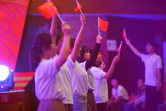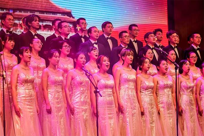 合唱队全体成员们精神抖擞、士气高昂!从单字的发音到整体的配合,从台上的齐声合唱到台下挥舞的五星红旗,师生们对节目进行了精心的排练和细致的打磨,克服了重重困难,最终成功的将心理澳门六合彩开奖直播