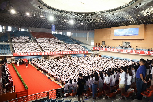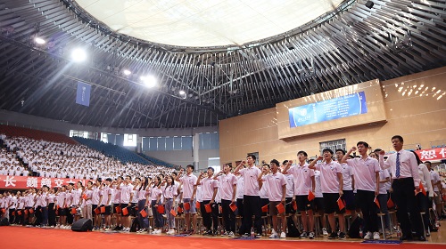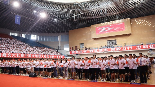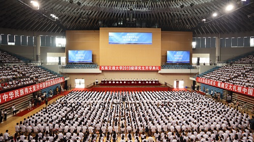 2019年8月23日上午8点,西南交通大学2019级研究生开学典礼在犀浦校区飞碟体育馆召开。正值新中国成立七十周年之际,典礼现场播放了献礼短片《为祖国点赞》,4000多名研究生身着统一的文化衫,在澳门六合彩开奖直播
