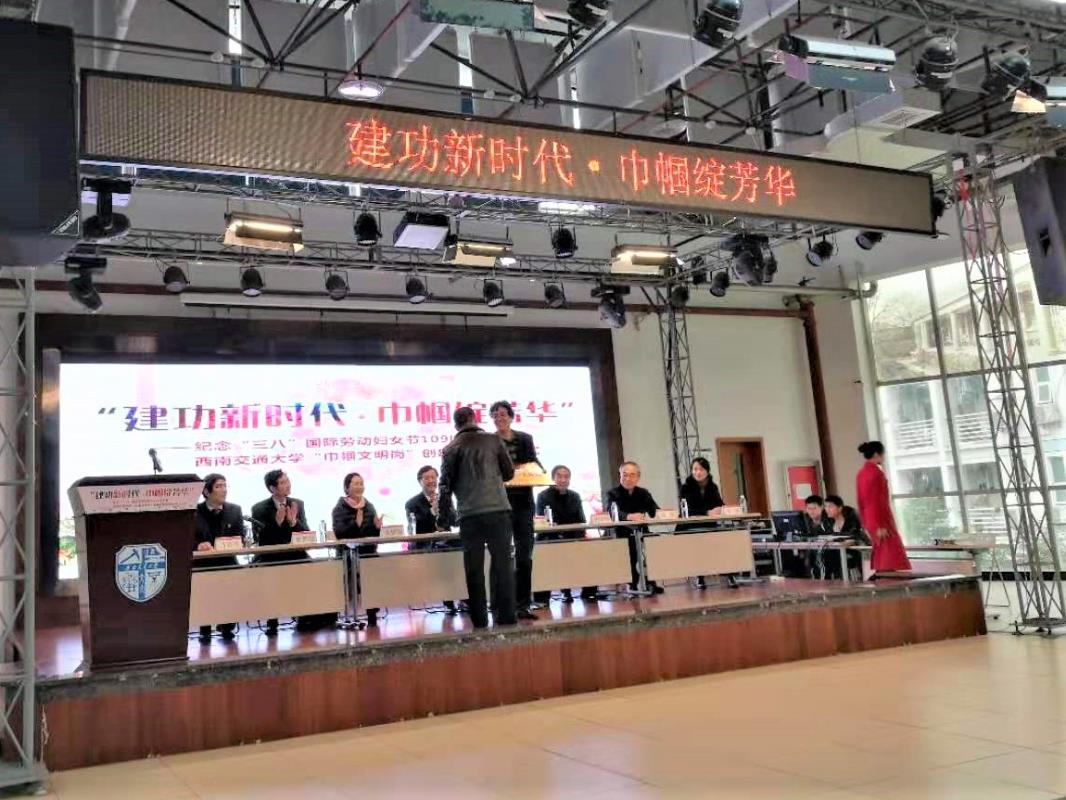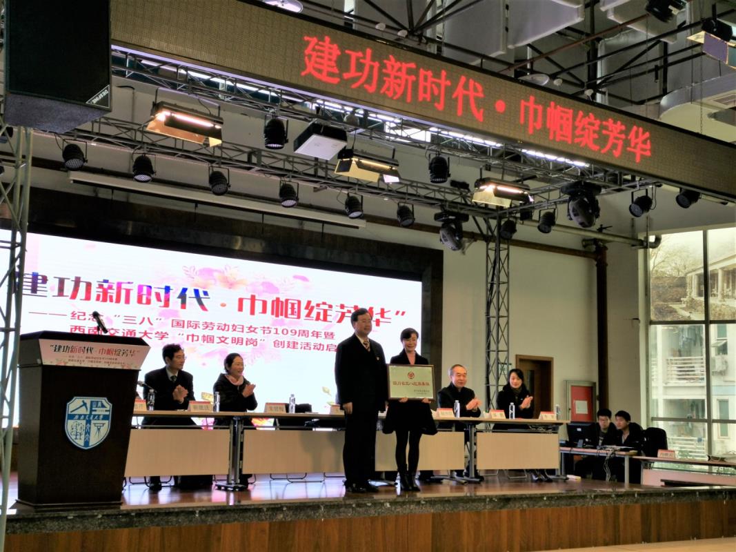 3月7日下午,学校举办“纪念‘三八’国际劳动妇女节109周年暨西南交通大学“巾帼文明岗”创建活动启动仪式。四川省教科文卫工会副主席刘科,学校党委书记王顺洪,党委常委、副校长朱健梅出席启动仪式。