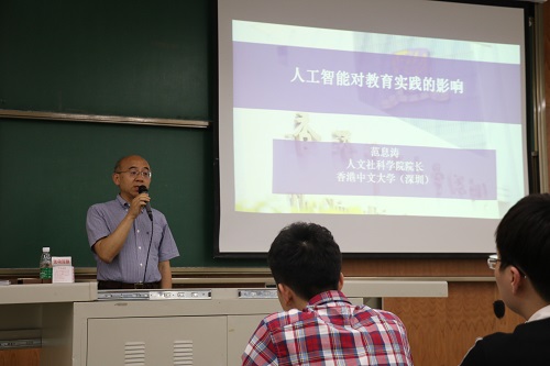 讲座中范教授热情洋溢,通过近些年来,人工智能的发展,从97年IBM“深蓝”战胜国际象棋冠军到AIphago机器人在围棋界胜利不断,都在预示着未来人工智能对生活的巨大潜在影响;范教授借用世界经济论坛2016研究报告的一句话:今天进入小学的百分之65的孩子们今后都会从事当下不存在的工作。因此我们一要重新思考教育制度,二要激励终身学习,做到不落伍。范教授提出第四次教育革命:人工智能如何改变教育;其中包括个性化测试/评估,从不同方面改变教育实践,提高效率,避免天花板效应和地板效应,从有教无类到真正的因材施教。