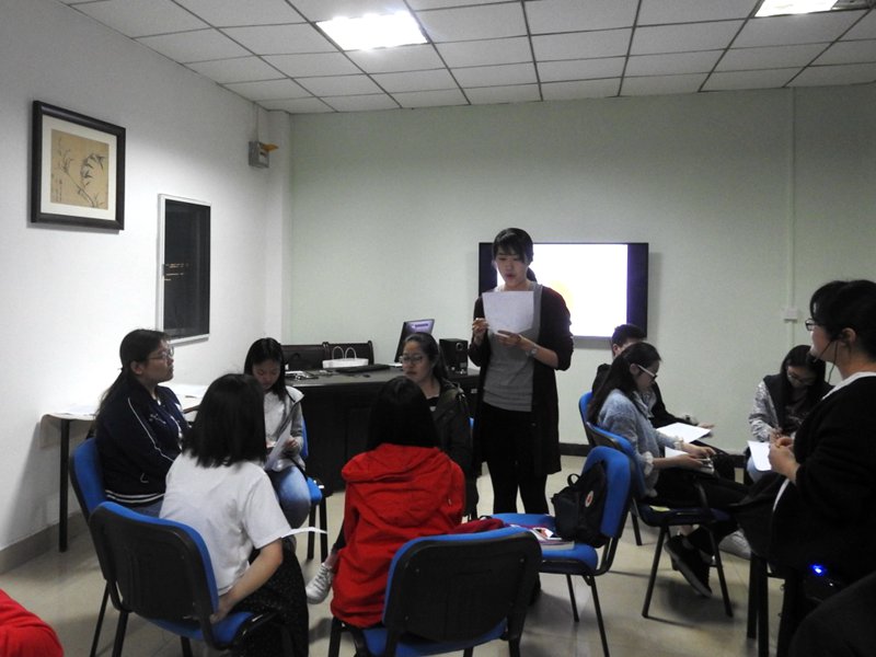 在活动一开始,伍老师以团体辅导的形式,将参与心理沙龙的同学们分成了四个组。首先以一些轻松活动的小游戏,帮助同学们建立了团队。