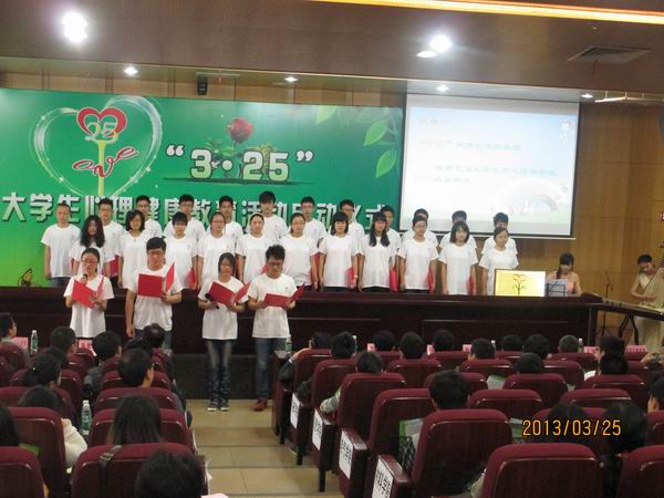 应用心理学专业2012级学生们在优美的民乐伴奏下,表演了“3·25”健康三字经,并在学生代表的代带领导下,进行了健康宣誓。