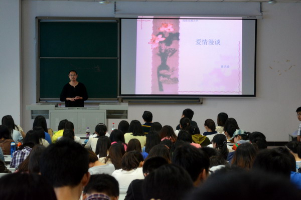 在观众互动环节中,同学们一个个都踊跃举手,提出心中已久的困惑。蒋老师从爱情的本质起源等方面对同学们的问题进行了解答,同学们受益匪浅,教室里久久回荡着热烈的掌声。
