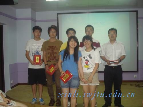 诗歌欣赏过后,开始了我们的颁奖时间。首先颁发各个比赛的优秀奖和三等奖,由马跃德老师为他们颁发奖品和证书,并合影留念。在颁发二等奖之前,我们在场的嘉宾、获奖者和心力网成员一起参与了唐诗宋词有奖抢答游戏,现场气氛非常活跃,大家诗兴大发,踊跃参与,现场沉浸在浓浓的文化氛围之中。轻松的游戏过后,我们继续颁发二等奖,由杨兴鹏老师为获奖者颁发奖金和证书并合影留念。每次颁奖后我们都会玩一个游戏调节气氛。二等奖过后现场玩起“你画我猜”的游戏,在游戏中我们获得了很多乐趣与笑声。最后,我们颁发了心情故事征文比赛一等奖,获得心情故事一等奖的文章是来自公管学院沈泽如的《常怀感恩之心,品味平凡人生》。在领完证书后,她跟我们分享了这篇文章的创作背景和灵感。每一篇心情故事征文背后都有一个真实感人的故事,都值得我们去欣赏、品味和体会。获得心理摄影比赛一等奖的作品是土木学院的研究生翟鹏程的《诗意镜湖》,获得手抄报一等奖的是艺传学院的彭晶同学的作品。颁奖过后,杨兴鹏老师对心情故事的征文比赛评选做了总结和点评,首先他对本次活动给予了很高的评价,他说,没有真正经历过是写不出这么真实有内涵的文章的,他希望我们积极乐观地面对生活,感受生活中的美与价值。