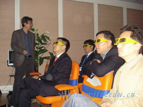 最后,专家组还参观了虚拟现实心理实验室。这是专门用于行为治疗的实验室,利用3D技术,虚拟画面,让测试者通过逼真的声像效果,直面自己惧怕的事物,进行心理训练和治疗。该实验可用于治疗恐高症、克服怕猫狗等动物的恐惧心理,舒缓地震恐慌心理等。该实验是大学生创新研究项目之一。专家们纷纷戴上3D眼镜,亲身体验这一独具特色的实验,并对我校学生创新实践能力表示赞赏。