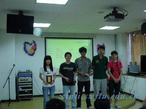 带来的精彩舞蹈表演《再次重逢的世界》带进了又一波高潮。不息的掌声中,大会继续请上了荣获二等奖的三名选手。紧接着,建筑学院的李楠和电气学院的李雪松陆续登场,精彩的节目使大会高潮迭起,掌声不断。最后是最激动人心的一等奖的颁布。为满足大家对一等奖作品的好奇与期待。两位作者分别与大家分享了作品与写作心得。两篇文章各有特色,赵慧老师点评中,将王龙泉的《旅行的意义》比作高山,因为它厚重;将刘倩倩的《原来你也在这里》比作流水,因为它灵动而柔情。赵慧老师对两篇作品给予了充分的肯定。之后,心力网众成员又给大家带来了手语表演《感恩的心》,令大家感动不已。过后,心力网成员王雪涛,又意犹未尽的为大家即兴演唱了一首歌曲《一路有你》,并邀请了街舞协会会长为大家带来了精彩街舞表演。