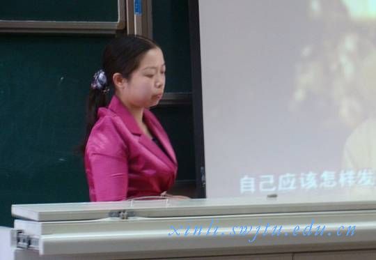 2011年4月23日下午,高飞老师为大家带来的她经过精心准备的精彩一课。比赛中,高老师用形象、生动、优美的语言充分地向同学们讲述了有关职业心理的理论知识,并采用鲜活的实例进一步阐述,加深同学们对理论知识的理解,可谓是生动活泼,深入浅出,给同学和评委留下深刻的印象,获得一致好评。