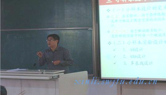 就在与此同时,另外一个教室里也沉浸在浓浓的学术氛围之中。杨兴鹏老师正在进行试验心理学的教学。你可以从学生们一个个忘我的表情看出他们对于知识的渴望以及对杨老师教学技能的欣赏。杨老师在教学中注重理论联系实际,信息量大、具有科学性、系统性和思想性。老师还会偶尔不经意间以一种十分幽默的方式进行理论阐述,既活跃了课堂气氛,又引发同学思考。