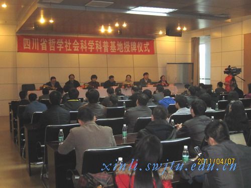 等十二家单位为“四川省哲学社会科学普及基地”,并于四月七日上午10时,在西南交通大学图书馆三号会议室隆重召开了“四川省哲学社会科学普及基地”授牌仪式。