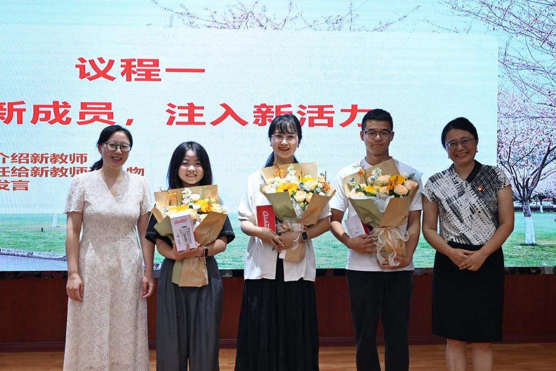 会议第一项议程是欢迎三位新入职教师,高雪梅主任向与会者介绍了三位新进教师基本情况,刘咏梅书记和高雪梅主任为他们颁发了象征“一辈子”教师生涯的花束和水杯。新教师们表达了加入心理澳门六合彩开奖直播