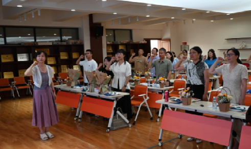 会议第四项议程是全体教师宣誓,陈华教授领誓,全体教师铿锵有力的进行了“人民教师誓词”宣誓。