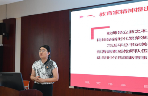 会议第三项议程是全国教育大会精神学习,本项议程由刘咏梅书记领学。具体学习了教育家精神提出的背景和重要意义;教育家精神的时代内涵;学习习近平总书记在全国教育大会讲话的精神以及学习《中共中央国务院关于弘扬教育家精神加强新时代高素质专业化教师队伍建设的意见》文件精神。学习过程中,刘书记结合个人成长经历,强调了以身作则的重要性,“做学生为学、为事、为人的大先生”。