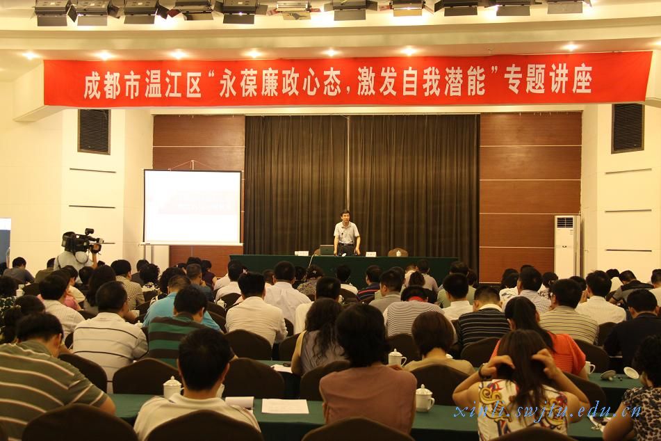 应成都市温江区纪委邀请,我校澳门六合彩开奖直播 主任宁维卫教授于7月2日上午为温江区领导干部举行了一场“永葆廉政心态,激发自我潜能”专题讲座。本次讲座旨在进一步推进党员干部反腐倡廉教育,帮助党员干部释放压力,保持健康的廉政心态和良好的职业心态。温江区各区级部门班子成员、各镇街班子成员共200余副处级及以上领导干部听取了报告。成都电视台、温江电视台等媒体进行了宣传报道。