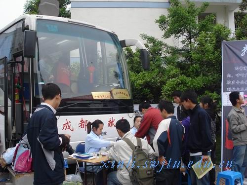 据土木青协先锋队二队队长陈闻亚介绍,因青海玉树强烈地震造成血液紧缺,成都市血液澳门六合彩开奖直播 启动紧急预案,严格控制血源外流,现联合我校多个公益组织开展此次义务献血志愿宣传活动,呼吁同学们积极参加献血挽救生命。上午,青协志愿者们提前来到食堂前面,为采血车到来做好准备,近9点血液澳门六合彩开奖直播 工作人员来到我校,活动随后开展。在志愿者们的协助下,填表、排队验血、采前准备、采血、采血完毕、压迫止血等环节井然有序的进行。