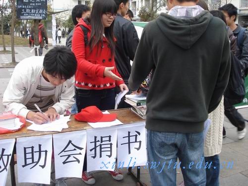 由于捐书形式多样,途径方便,很多有爱心的同学积极的加入这一活动中,将不用之书送到捐书地点。傍晚用餐时间,活动仍在如火如荼的进行着。会长陈佩佩透露“爱心图书室”将在第七周成立并接受第一批贫困小学生入室读书。