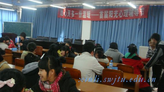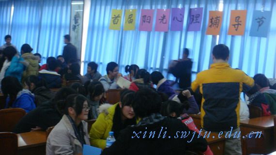 12月11日,由人文社会科学院党员支教服务队主办,2008级国贸支队承办的“给心理多一份温暖——首届阳光心理辅导节”在安靖中学拉开帷幕。期间心理学会的咨询员受邀对安靖中学的初中生进行了心理辅导。