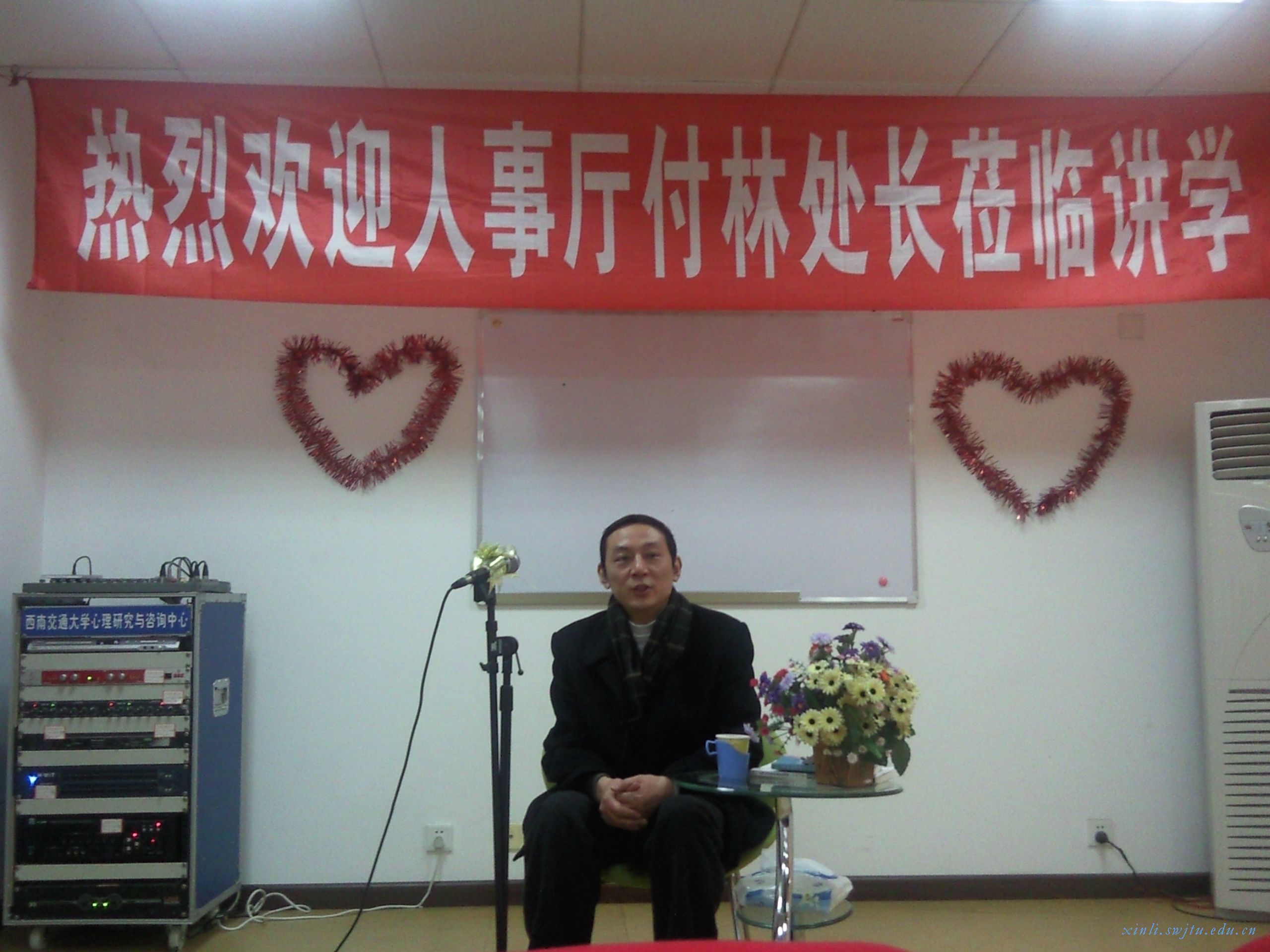 对于专业与就业,付处长指出每个人应该做好近期的学业规划与远期的职业规划,并把它作为四年乃至未来人生奋斗中的指路灯,从而不使自己迷茫,停止向终点前进。同时,付林处长指出在心理问题日益受到社会重视的形势下,创办心理学专业体现了西南交大独到的眼光,心理专业的学子更要对自己的专业充满信心。特别是2008年的地震给许多人带来了巨大的心灵创伤,正急需大量的心理学人才为他们提供心理援助。
