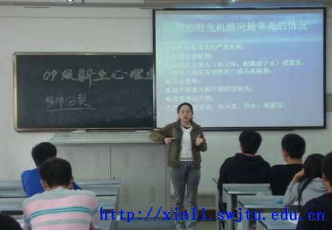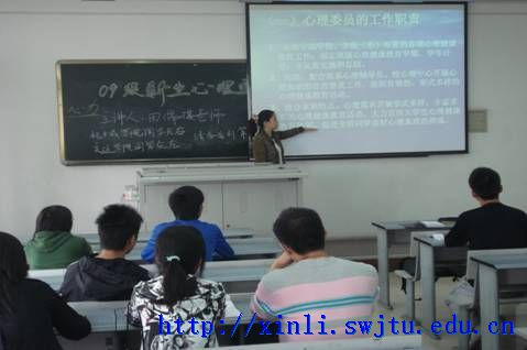 2009年10月15日下午1:30在X1217教室,田瑞琪老师对交通运输学院和机械学院的班级心理委员做了心理安全工作培训。