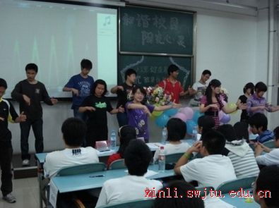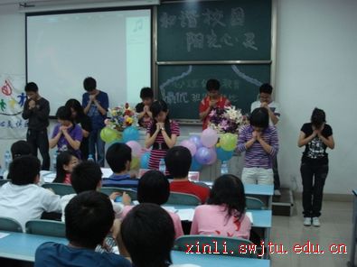 最先出场的07交运4班用他们精彩的PPT和自拍的DV赢得了在场的观众阵阵喝彩。接下来的班级都各自尽显阳光风采,现场气氛一阵高过一阵。“一班,一班,绝不一般”,随着06交运1班的充满激情的班级口号,把本次评比活动也带入了最高潮。一班的三位学长向大家介绍了他们班级心理健康教育活动,然后谈到了他们的班级旅游,手语培训等多方面的活动,体现了强大的班级凝聚力,随后三位同学为大家带来了精彩的手语表演,她们充满激情,同时也感染了全场的同学,在所有同学的欢呼声中,本次活动也渐渐接近尾声。