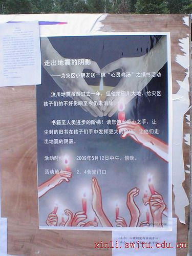这次活动的组织者06生信2班班长对记者说,这次活动主要是收集图书,捐给灾区小朋友,献上一份爱心。希望能帮助他们早日走出地震的阴影,健康快乐地成长。
