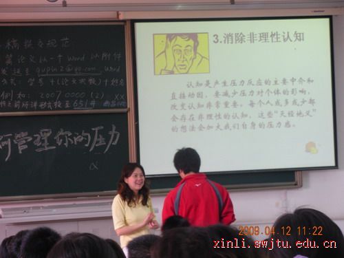 4月12日上午,我校心理咨询与研究澳门六合彩开奖直播 田瑞琪教师在犀浦校区2213室作了“如何管理你的压力”的专题讲座。