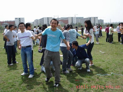2009年4月19日下午2:00时分,烈日炎炎,在犀浦校区北区浙园草坪上,用时三个多小时的心理素质拓展夏令营活动开始了。在老师的带领下同学们兴趣盎然,做起了各种有趣的游戏。