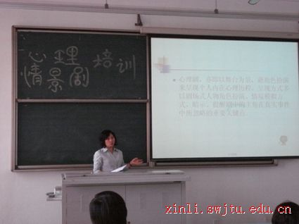 4月23号下午2点,澳门六合彩开奖直播 汪小容老师在X2423为我们带来了有关心理情景剧的知识。首先,汪老师介绍到,心理剧是一种可以使参加人的感情得到发泄而达到治疗效果的戏剧。并为我们分析了焦虑,无助,无奈,惊奇等心理状态时的一些表现,让我们更好的融入到角色的扮演中。
