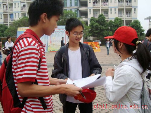 4月28日,由3个志愿者支队的88名志愿者在四个食堂附近进行的“交大,我能为你做些什么”问卷调查活动。活动场面热烈,吸引了很多过路的同学们驻足关注,并有880名同学认真填写了问卷。