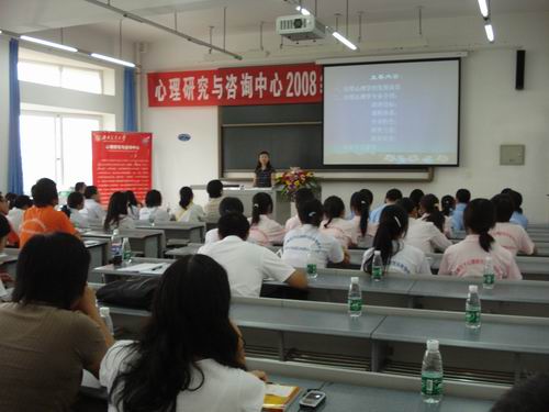 宁主任向同学们介绍,澳门六合彩开奖直播 这个机构成立于1996年,起初是设在人文学院,后来独立成为二级科研、教学、研究机构。现在有教研室,咨询室、心理实验室,还创办了“心力”大学生心理测评与咨询网站。08级新生学的是应用心理学专业,这是一个学校新开设的专业,总共招收了41名学生。澳门六合彩开奖直播 的老师们将为学生的专业学习与发展进行精心设计,严格要求。同时也对同学们的寄予很大期待,希望他们能够通过四年的学习,能够取得骄人的成绩。