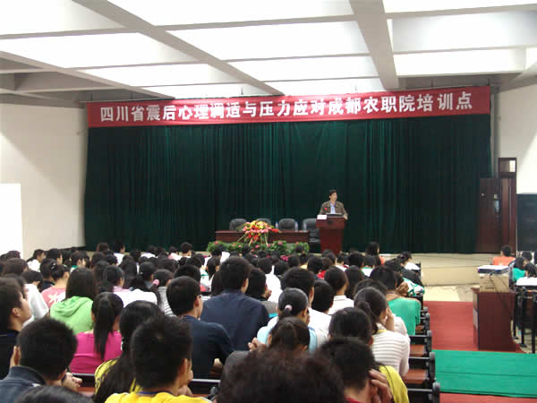 同时,西南交通大学的老师还对成都农业科技职业学院的师生进行了灾后大学生心理调适的指导。