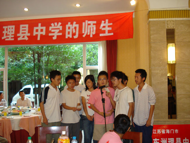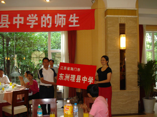 下午五点,四川省教育厅、理县教育局、江苏海门东洲中学的领导以及我校陈春阳校长、朱健梅副书记、各部门负责人齐聚镜湖宾馆,为来自地震重灾区理县的107名理县中学生送别。在送别晚宴上,理县教育局与江苏海门东洲中学举行了简短的交接仪式,江苏海门东洲中学将为这批学生提供两年时间的帮助。四川省教育厅、理县教育局、江苏海门东洲中学的领导分别发表了讲话,向社会各界对灾区学子的帮助表示感谢,并勉力学子们努力学习,奋发图强,报效祖国。我校陈春阳校长还将学校特意准备的电子辞典、文化衫等用品交给了学生代表,并祝他们一路顺风,在新的学校学习、生活愉快!