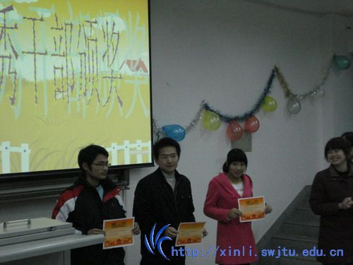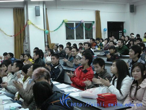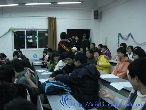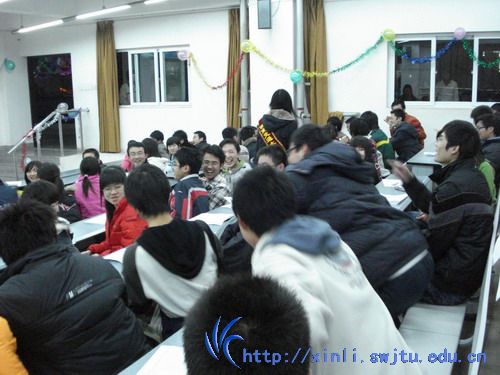 12月5日晚的1210教室在五颜六色的气球和彩带的点缀下显得格外温馨,教室里同学们亲切的交谈着,轻松温暖的气氛与教室外的逼人的寒气形成了鲜明的对比。