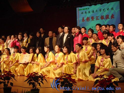 西南交通大学大学生艺术团下设五个艺术团队:合唱团、舞蹈团、乐团、话剧团及舞美团。在过去的一年里,他们活跃在我校各种校园活动中,极大地丰富了我们的校园生活,为每一位在校大学生提供了学习与交流的平台,也推动了我校的精神文明建设。