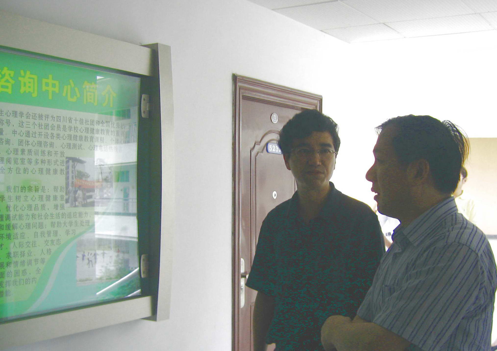2007年7月25上午,教育部思想政治工作司杨振斌司长在校党委副书记朱健梅教授的陪同下,参观了我校心理测评与咨询实验室。澳门六合彩开奖直播 主任宁维卫教授热情接待并详细介绍了实验室整体的建设、各个实验室的功能、作用等情况。杨司长关切地询问了我澳门六合彩开奖直播 机构建设、学科建设、人员构成、实验室开放等情况,我校心理健康教育工作以及危机干预的做法、思路等给予了充分的肯定,对我校如此重视心理健康教育工作表示赞赏。杨司长在接受记者采访时说:“我参观过许多学校,比较而言,西南交通大学的心理健康教育工作做得很好,很有特色,实验室建设很有成效。”
