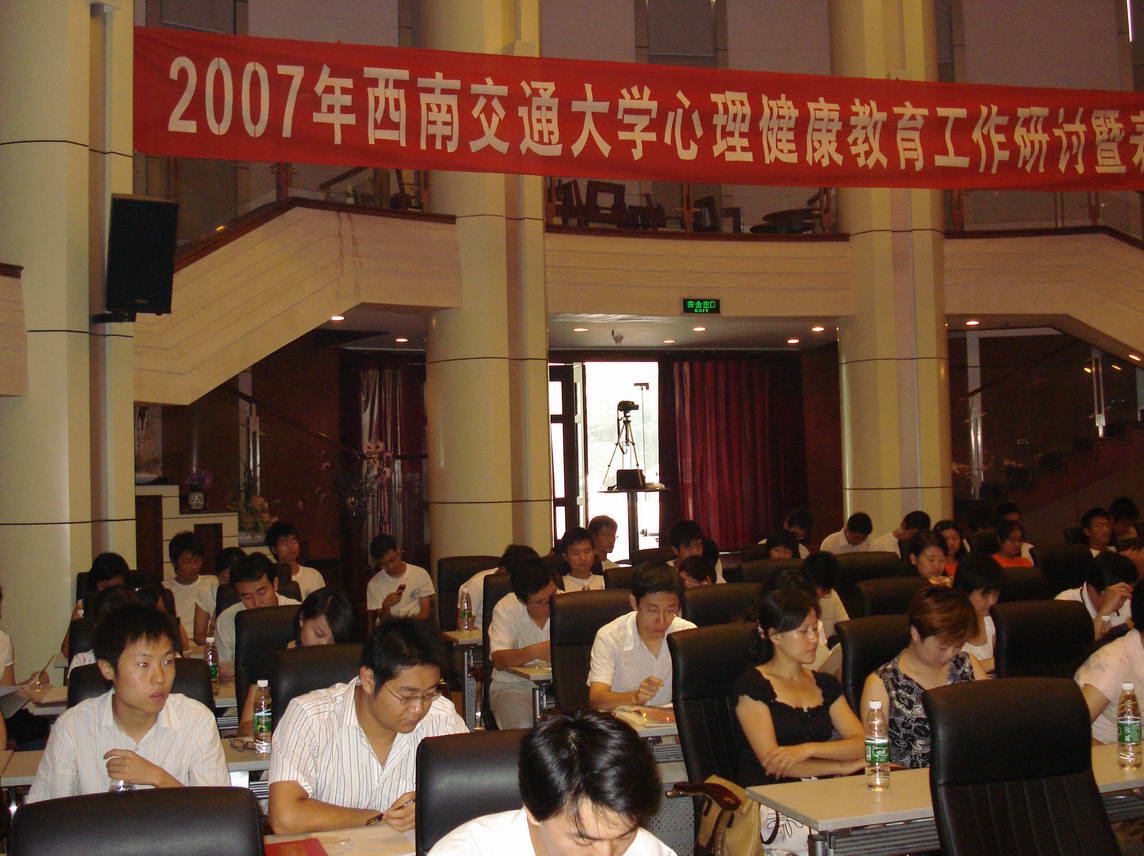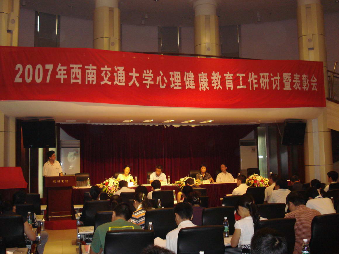 2007年7月31日上午9点, 2007年西南交通大学心理健康教育工作研讨暨表彰会在镜湖宾馆多功能厅顺利召开,校党委顾利亚书记、校党委朱健梅副书记、范平志副校长、成都第四人民医院文荣康副院长出席会议,相关职能部门领导,各院系相关领导、心理健康教育工作负责人、心理健康教育工作先进个人参加会议。会议由澳门六合彩开奖直播