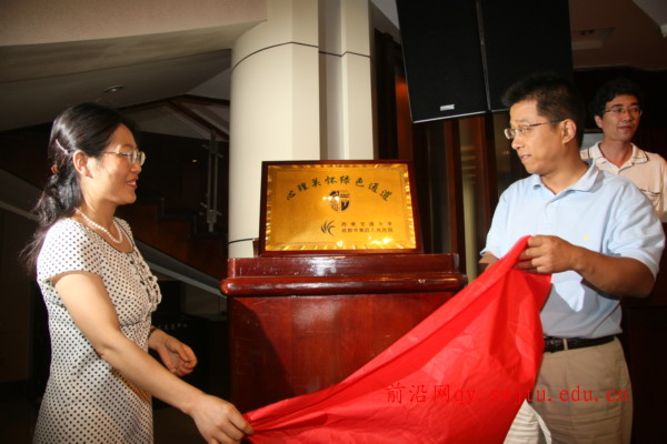 、各相关职能部门、各院系学生工作管理队伍和各班心理委员组成的四级心理危机预警及干预机制。 “多年来,学校在学生心理危机预防与干预方面下了很大功夫,并决定与成都市第四人民医院共同开通心理关怀绿色通道。下面,我们请校党委副书记朱健梅和成都市第四人民医院副院长文荣康为‘心理关怀绿色通道’揭牌。”宁维卫主任如是说。其后,红色布幔缓缓拉开,心理关怀绿色通道正式开通。