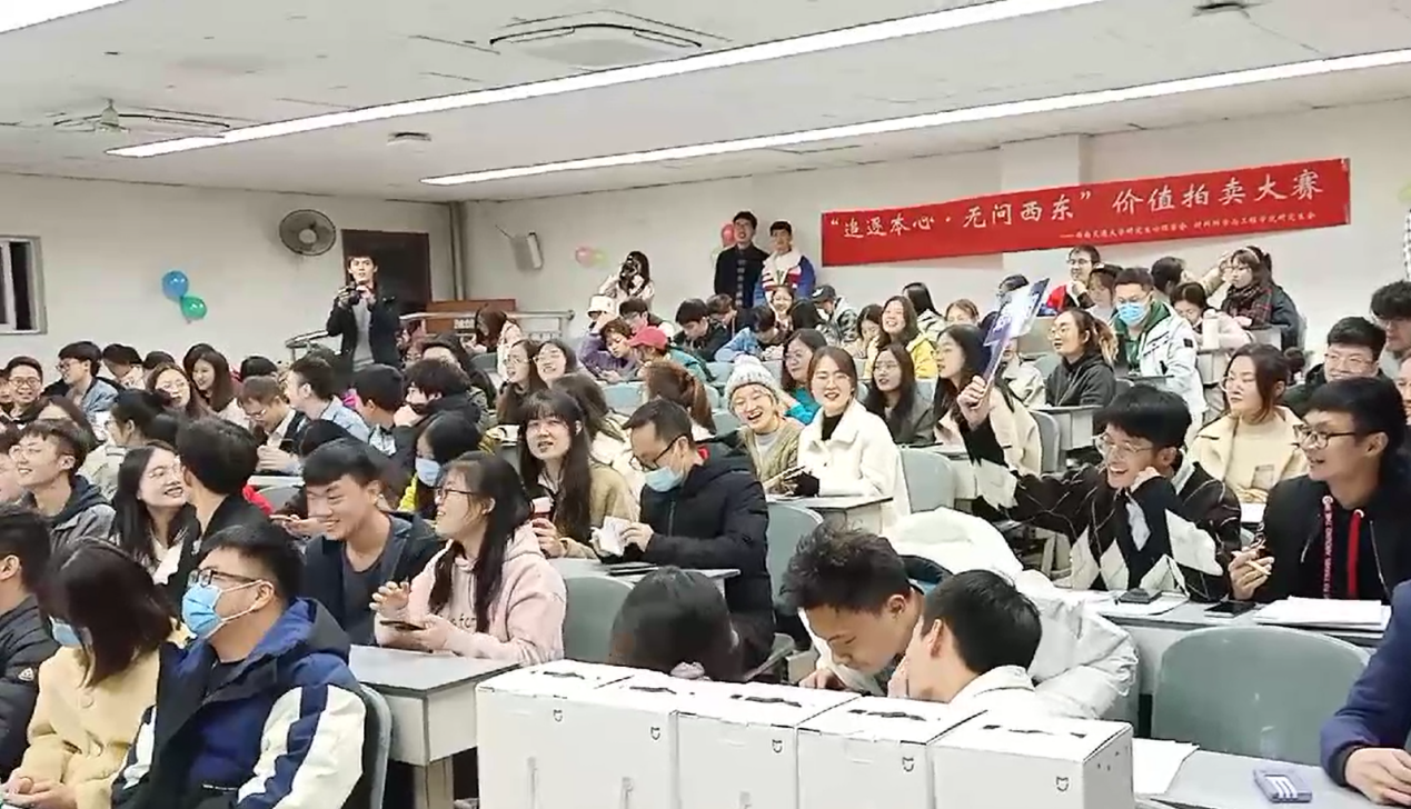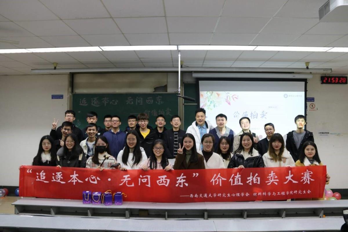 2020年11月22日19:30,“追逐本心,无问西东”价值拍卖大赛在九里校区逸夫楼4418教室拉开帷幕。本次活动由共青团西南交通大学委 员会、西南交通大学研究生心理学会和材料科学与工程学院研究生会共同举办,来自研究生心理学会的何林根和陈慧雯同学担任主持人。当天晚上,15组参赛选手、评委嘉宾以及第二课堂观众在内的一百七十多名同学积极参与其中。