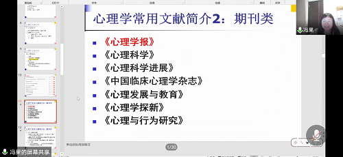 2020年11月12号晚7点,心理澳门六合彩开奖直播 科研工作坊第二场讲座在腾讯会议上开展,本次讲座主题为如何查找文献和写好文献综述,讲座邀请嘉宾为心理澳门六合彩开奖直播 优秀教师冯果。辅导员陈瑶主持,心理澳门六合彩开奖直播 各年级本科生、部分研究生参与此次讲座。